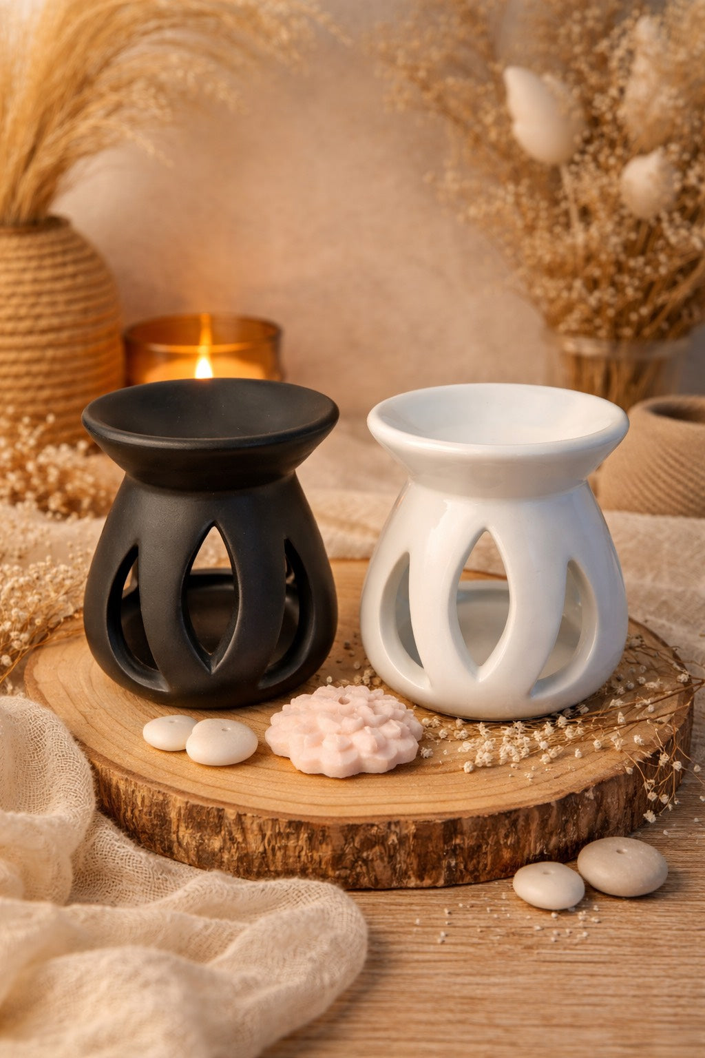 Brûle-parfums aux lignes épurées et géométriques, ce trifolié incarne l'élégance minimaliste. Conçu pour diffuser vos parfums préférés, il transforme chaque pièce en havre de sérénité.